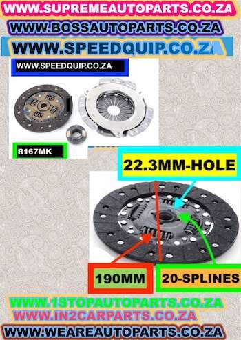 CLUTCH KIT R167MK:MAZDA RUSTLER 1.3 B3 1991-ON CLUTCH PLATE SIZE IN KIT-190MM X HOLE-22.3MM X SPLINES-20
